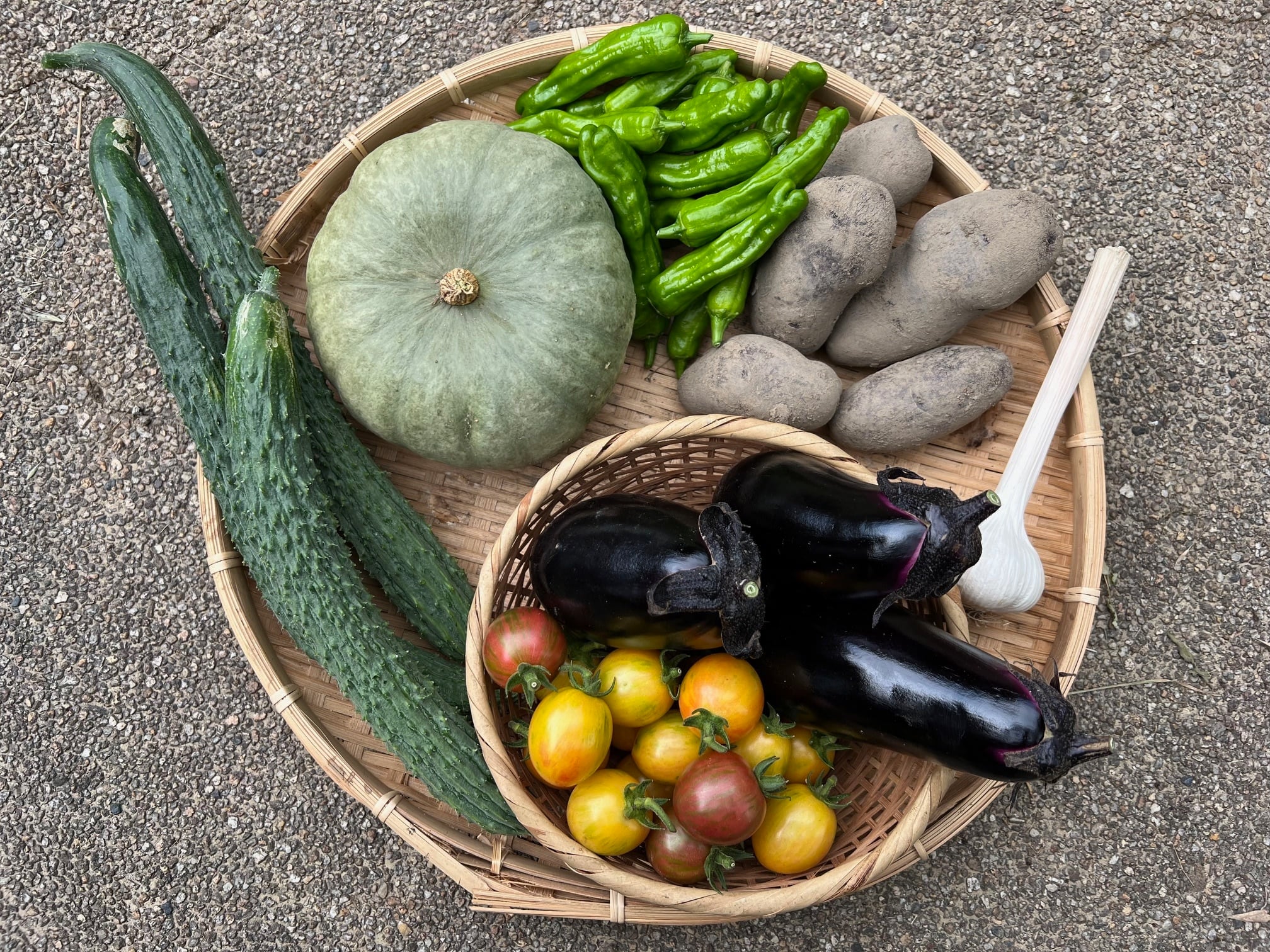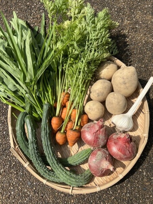 ※こちらの商品は山梨県身延町・富士川町・南部町在住の方が対象となります。 それ以外の地域にお住まいの方は「旬の野菜セット(発送)」からご確認いただきますようお願いいたします。 〇商品について 農薬・化学肥料不使用で育てた旬の野菜です。 季節毎の旬の野菜を7~10種類のセットにして、収穫したその日のうちに配達します。 ※野菜の内容はご指定いただけません。お任せセットとなります。 〇セット例 【6月~9月】 なす・ピーマン・ししとう・万願寺とうがらし・きゅうり・ミニトマト・人参・じゃがいも・かぼちゃ・玉ねぎ・インゲン豆・オクラ・ツルムラサキ・空芯菜・モロヘイヤ 等からお任せとなります。 〇配達日について ご注文後、最短で翌日収穫し配達いたします。 配達日時にご希望ございましたら、備考欄にてコメントお願いします。 日時指定記載無しの場合は、ご注文後、翌日配達いたします。 〇その他注意事項 画像はイメージです。 農薬不使用のため、一部傷や虫食いがある場合がございます。 梱包はリサイクルダンボールの場合がございます。